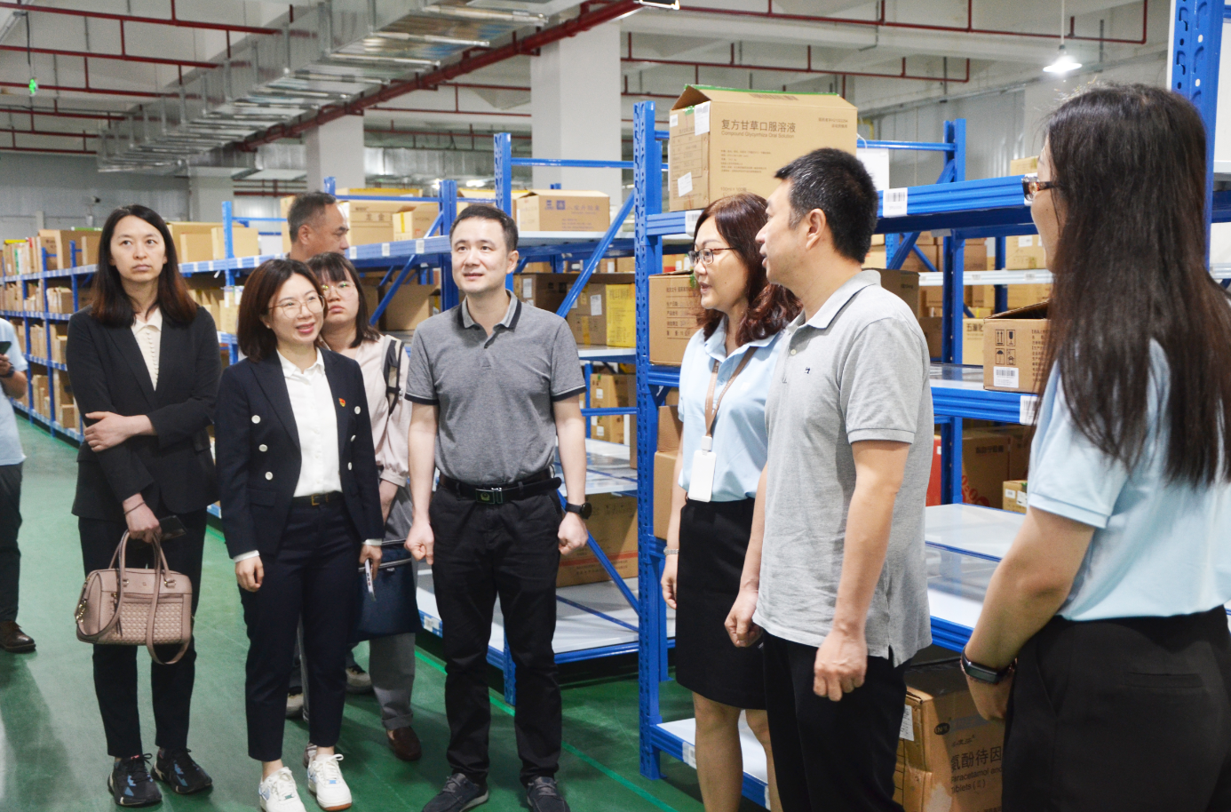 調(diào)研組一行首先深入倉庫現(xiàn)場,實地考察物流倉庫,了解倉庫儲存、配送環(huán)節(jié)的整體運行情況。隨后,調(diào)研組就調(diào)研項目與華潤汕頭康威醫(yī)藥進行座談。