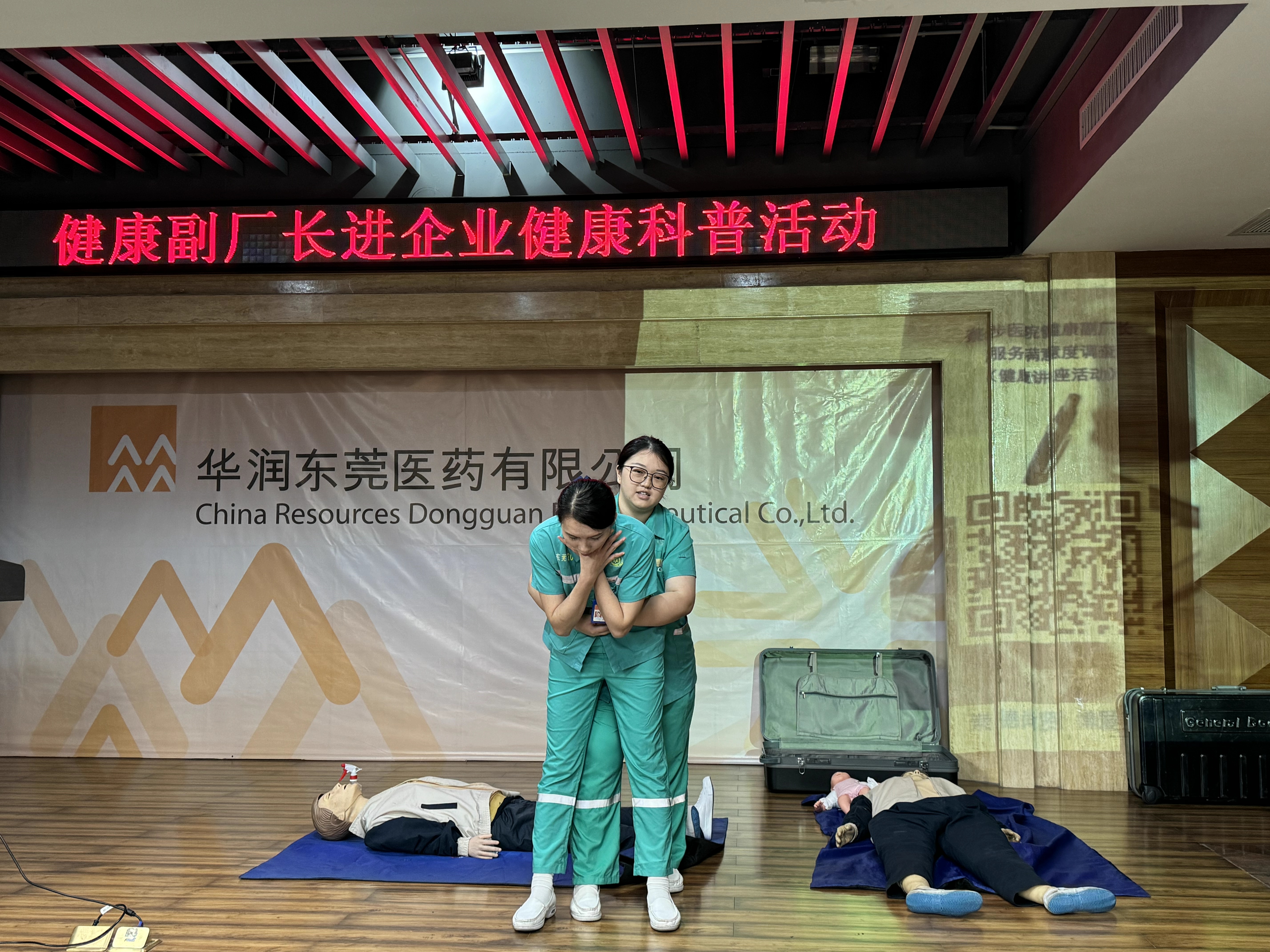 為深入普及健康防護(hù)知識(shí),進(jìn)一步提高職工現(xiàn)場急救能力,5月11日,東莞市寮步鎮(zhèn)衛(wèi)生健康局副局長溫丹峰與東莞市寮步醫(yī)院神經(jīng)內(nèi)科、急診科等一行人員走進(jìn)華潤東莞醫(yī)藥有限公司(以下簡稱“公司”),開展“健康副廠長進(jìn)企業(yè)”健康科普活動(dòng)之健康知識(shí)講座與急救技能培訓(xùn),公司全體員工積極參與。