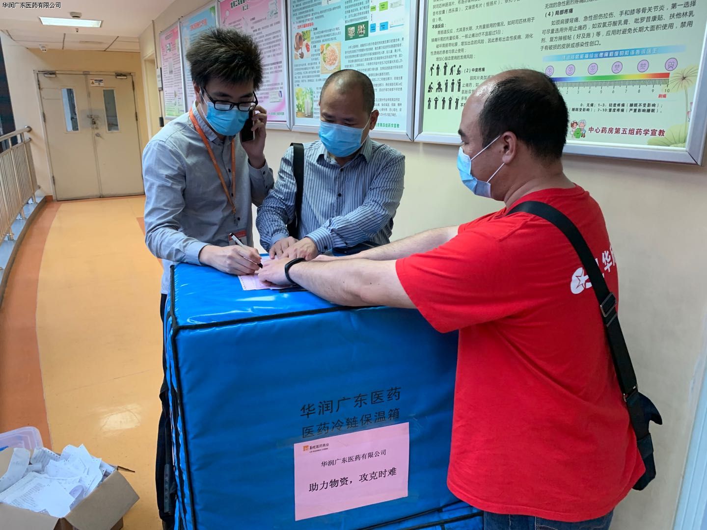29日,華潤廣東醫(yī)藥工作人員連同中國初級衛(wèi)生保健基金會廣州生命綠洲公益服務(wù)中心公益專員,將捐贈藥品通過冷鏈物流方式送抵廣州呼吸健康研究院。