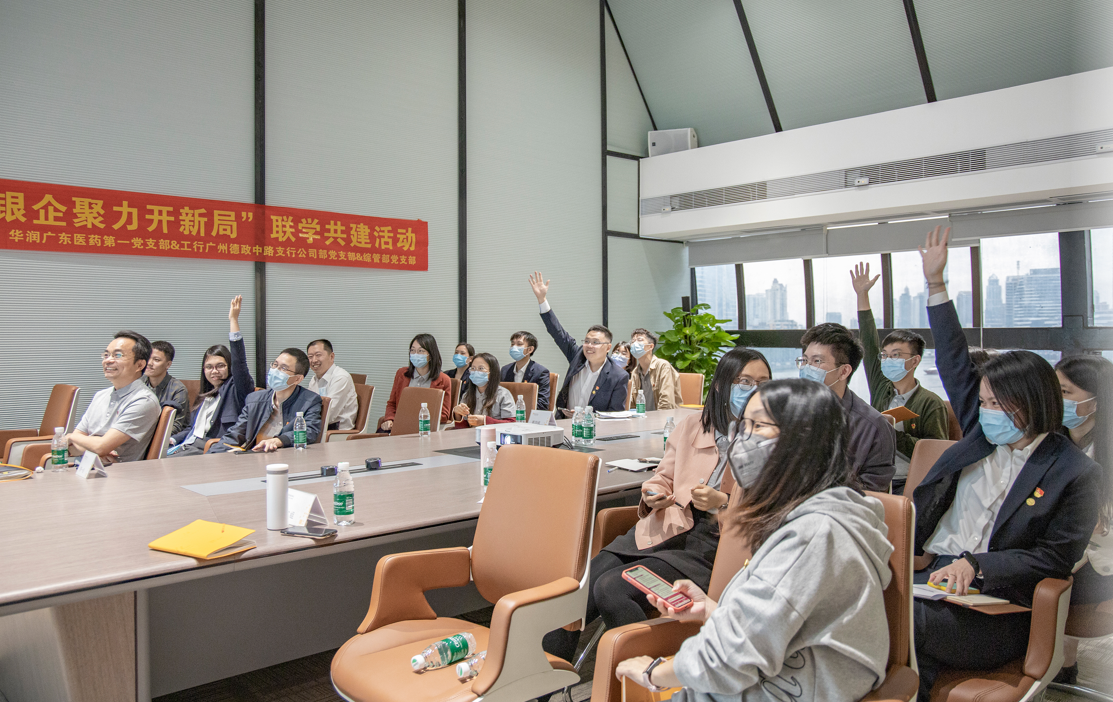 為扎實開展黨史學(xué)習(xí)教育,激發(fā)基層黨組織創(chuàng)造力、凝聚力、戰(zhàn)斗力,提高黨建工作水平,11月12日,華潤廣東醫(yī)藥有限公司第一黨支部與工商銀行廣州德政中路支行公司業(yè)務(wù)部及綜合管理部兩個黨支部聯(lián)合開展聯(lián)學(xué)共建活動。