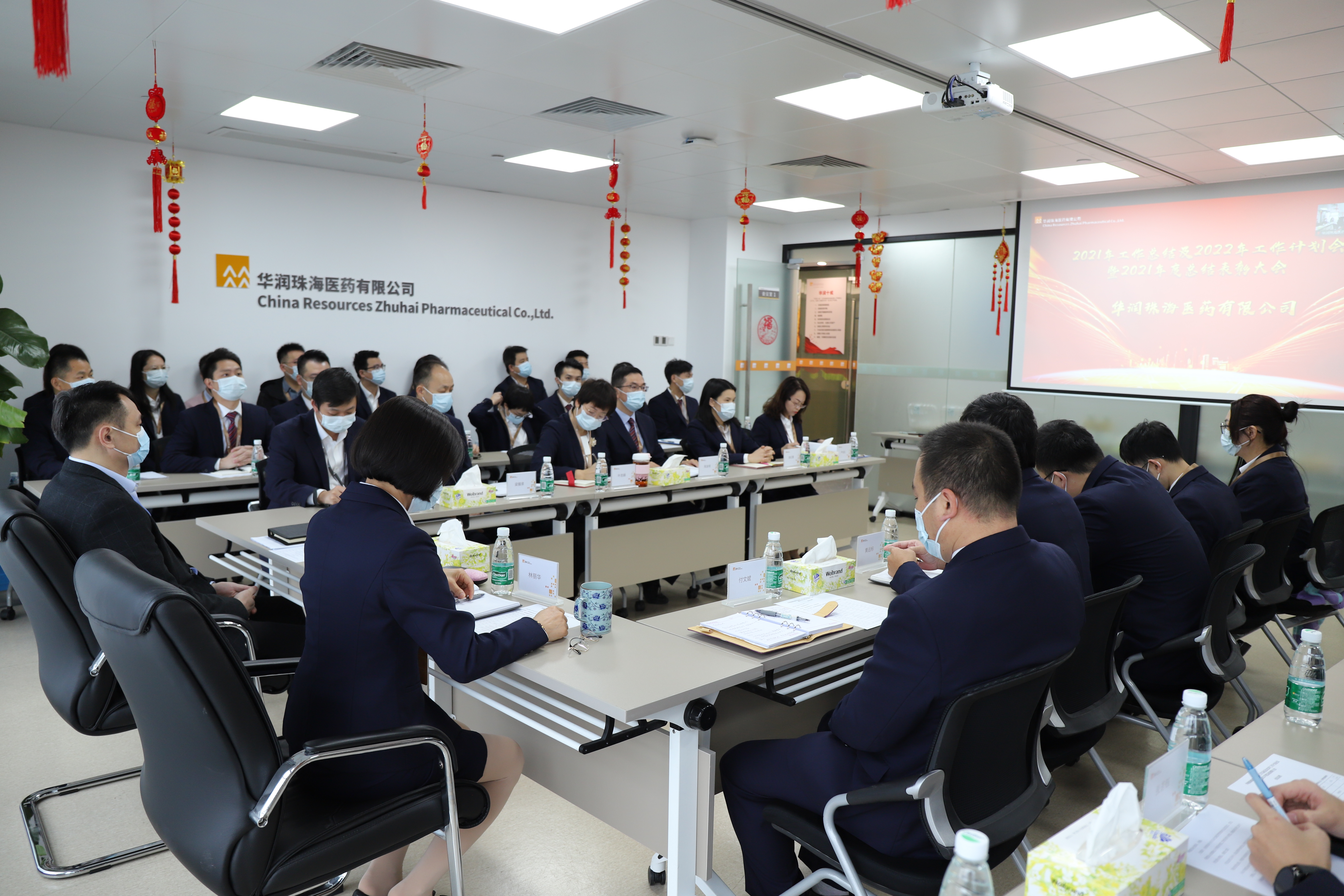 丑去寅來(lái)騰錦繡,牛歸虎到競(jìng)輝煌!揮別2021,喜迎2022。2022年1月14日14:00華潤(rùn)珠海醫(yī)藥有限公司在公司會(huì)議室隆重舉行2021年工作總結(jié)及2022年工作計(jì)劃大會(huì)暨2021年總結(jié)表彰大會(huì),公司管理團(tuán)隊(duì)及各部門(mén)負(fù)責(zé)人、采銷人員及優(yōu)秀員工參加會(huì)議,華潤(rùn)廣東醫(yī)藥醫(yī)院銷售部高級(jí)總監(jiān)兼華潤(rùn)珠海醫(yī)藥監(jiān)事伍總監(jiān)線上參會(huì)。